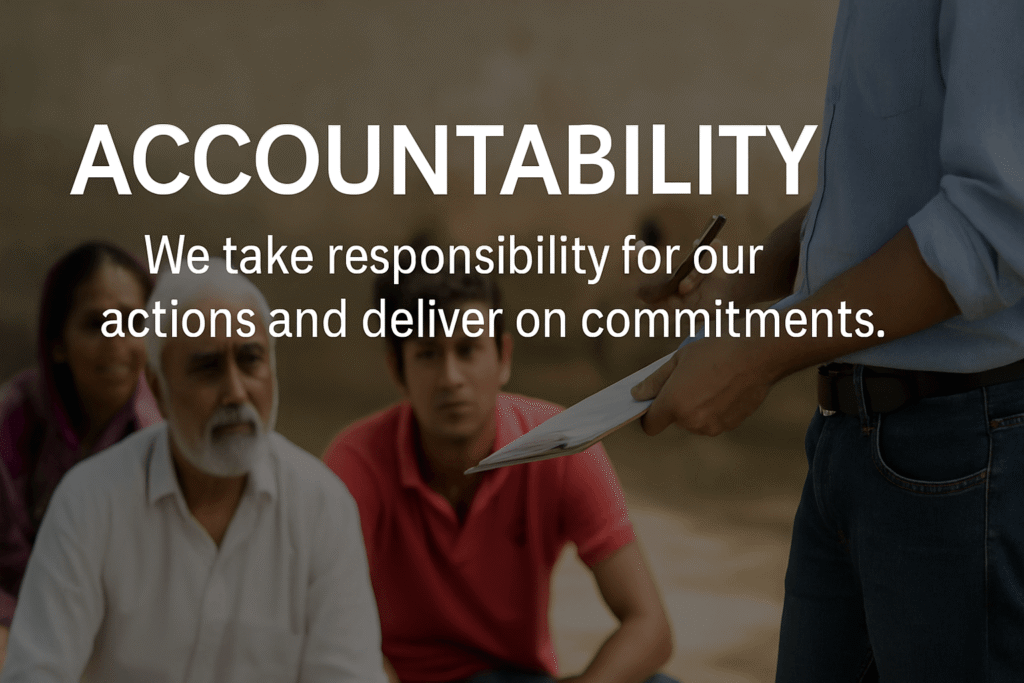Accountability is central to our governance ethos. We hold ourselves accountable to the communities we serve, ensuring that our actions align with our mission and values. Through robust monitoring and evaluation mechanisms, we track our performance and strive for continuous improvement.